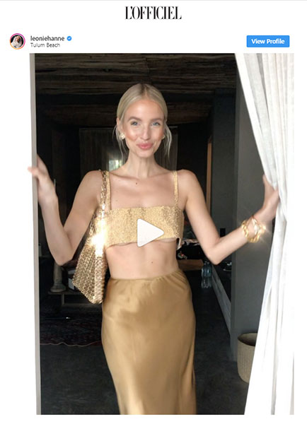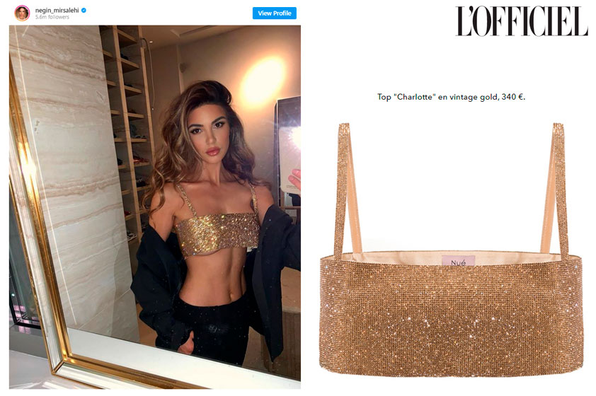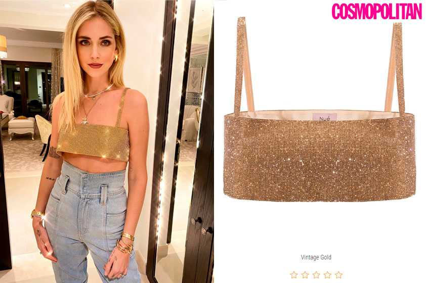 Chiara Ferragni, Negin Mirsalehi, Leonie Hanne… Naujųjų šventės proga milijonus turinčios „influencerės“ lyg susitarusios išsirinko trumputę auksu žėrinčią palaidinę-liemenėlę, sukurtą Kijevo mados namų „Nué Studio“.