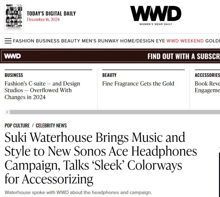 Suki Waterhouse Brings Music and Style to New Sonos Ace Headphones Campaign, Talks ‘Sleek’ Colorways for Accessorizing