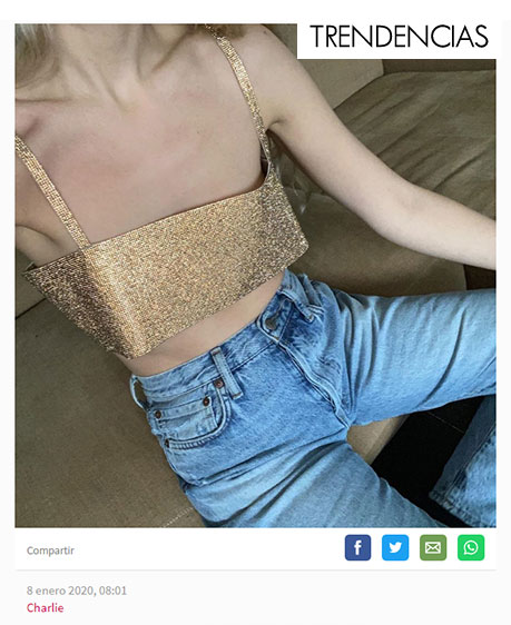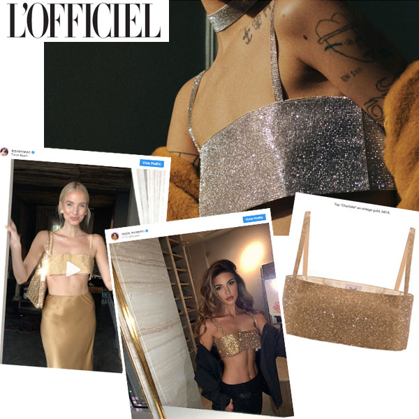 Un extremado (y minúsculo) top triunfa en el street style. Es brillante, se presenta en distintas tonalidades y la firma Nué Studio. Nacida en Ucrania y con una colección de fiesta perfecta para brillar con luz propia, esta firma propone esta prenda que se ha viralizado durante esta época de fiestas pasada.